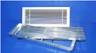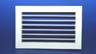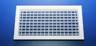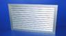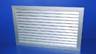 Rejilla de retorno para techos modulares. Esta construida con una serie de láminas paralelas fijas e inclinadas, unidas entre si por tubos de aluminio, esta especial disposición impide la visión a través de ella. |