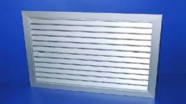 Rejillas para exterior de lamas fijas. Las lamas van dispuestas en una sola dirección, están inclinadas a 45º lo que unido a su geometría hace de este modelo una eficaz barrera contra la lluvia. Van dotadas de una malla electrosoldada para impedir el paso de elementos extraños. |