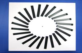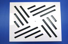 Difusor rotacional de lamas orientables, para la sustitución de una placa de techo modular. Válidos para impulsión y retorno. Se presentan en dos diseños, pero bajo demanda se suministran otras medidas y formas. Las lamas son regulables mediante un mando exterior esta regulación es independiente para Cada una. El movimiento de lama se realiza sobre casquillos de nylon. La sujección puede ser con puente de montaje, para montaje en techo quedando el difusor por debajo del techo. Si el montaje es sin plenum y en falso techo se apoya en los perfiles del falso techo, estos difusores se suministran sin taladro central (Standard). En caso de montaje con plenum, este se sujeta por las escuadras de que va provisto y el puente se sujeta a el por medio de un tornillo |